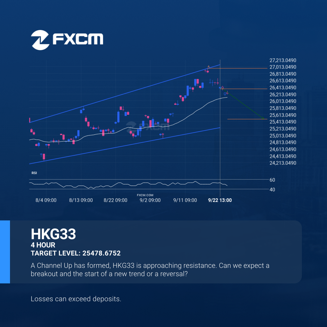 Emerging Channel Up detected on HKG33 – the pattern is an emerging one and has not yet broken through resistance, but the price is expected to move up over the next few hours. The price at the time the pattern was found was 26358.17 and it is expected to move to 25478.6752.