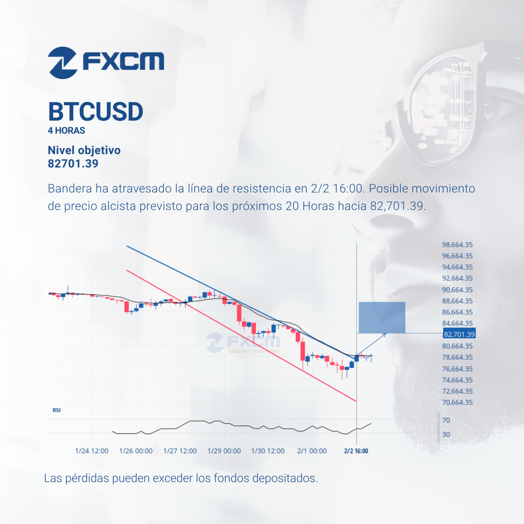 Bandera ha atravesado la línea de resistencia en 2/2 16:00. Posible movimiento de precio alcista previsto para los próximos 20 Horas hacia 82,701.39.