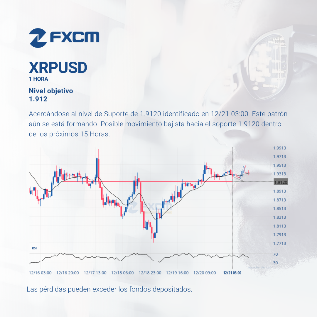 Acercándose al nivel de Suporte de 1.9120 identificado en 12/21 03:00. Este patrón aún se está formando. Posible movimiento bajista hacia el soporte 1.9120 dentro de los próximos 15 Horas.
