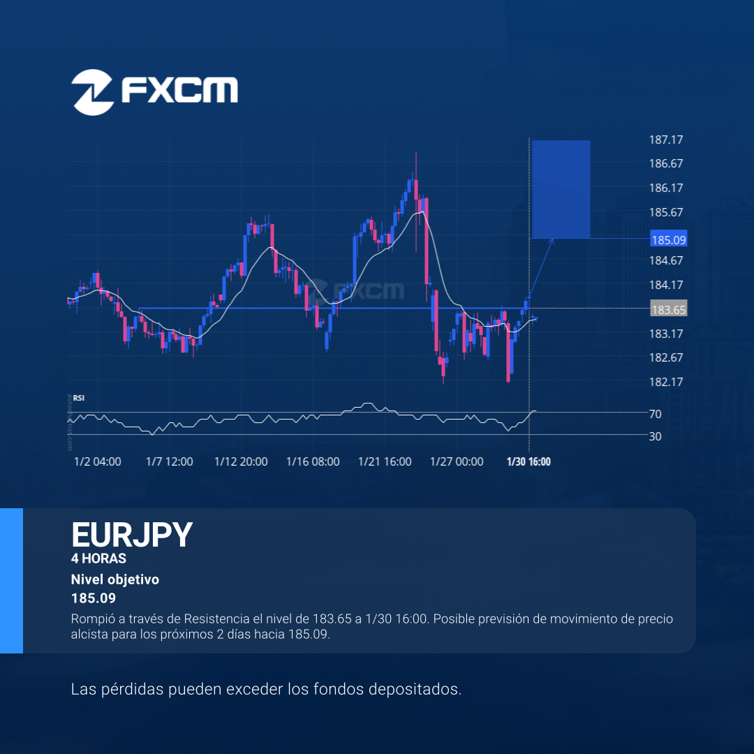 Rompió a través de Resistencia el nivel de 183.65 a 1/30 16:00. Posible previsión de movimiento de precio alcista para los próximos 2 días hacia 185.09.