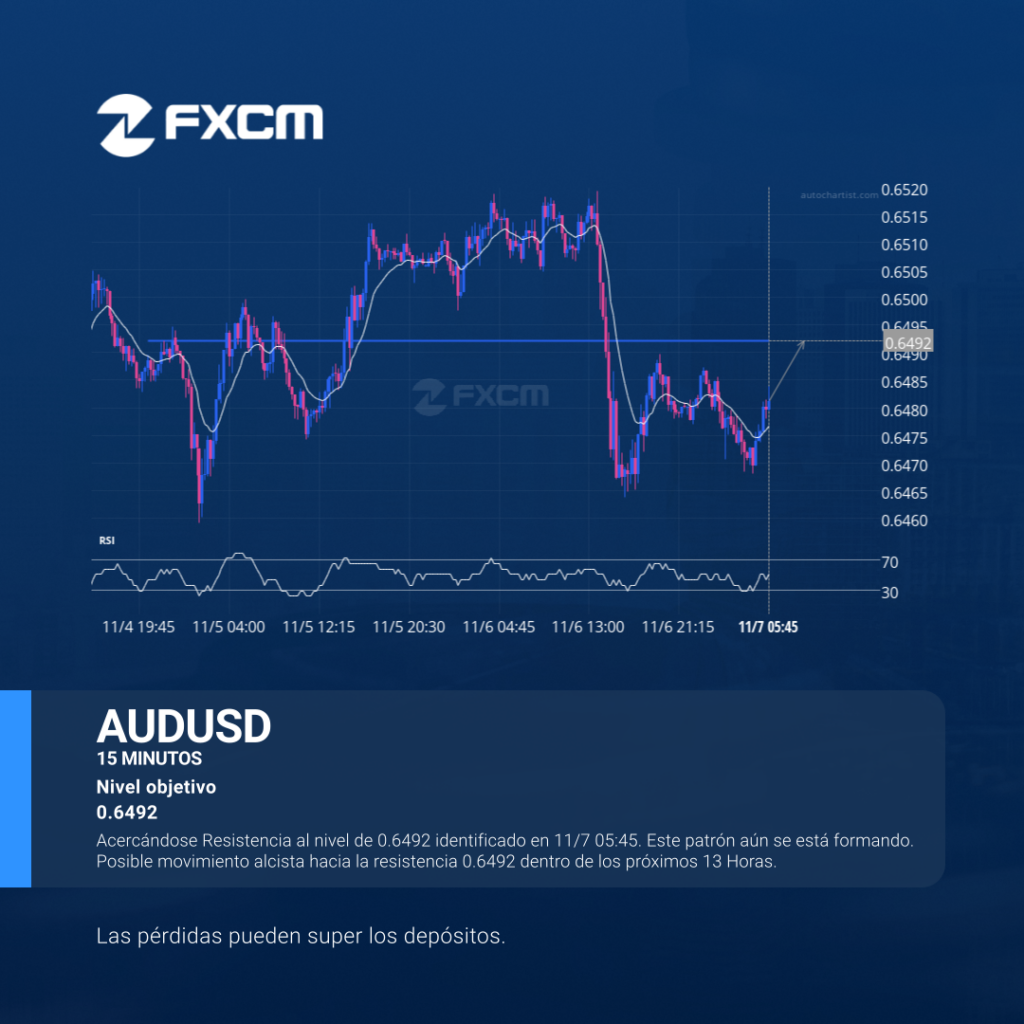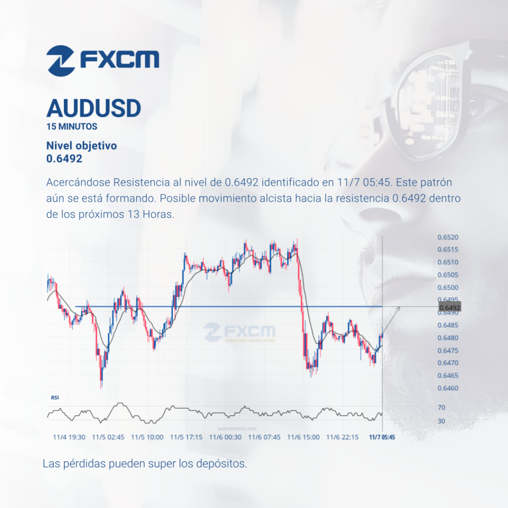 Acercándose Resistencia al nivel de 0.6492 identificado en 11/7 05:45. Este patrón aún se está formando. Posible movimiento alcista hacia la resistencia 0.6492 dentro de los próximos 13 Horas. El rendimiento pasado no es indicativo de resultados futuros. Las pérdidas pueden exceder los fondos depositados.