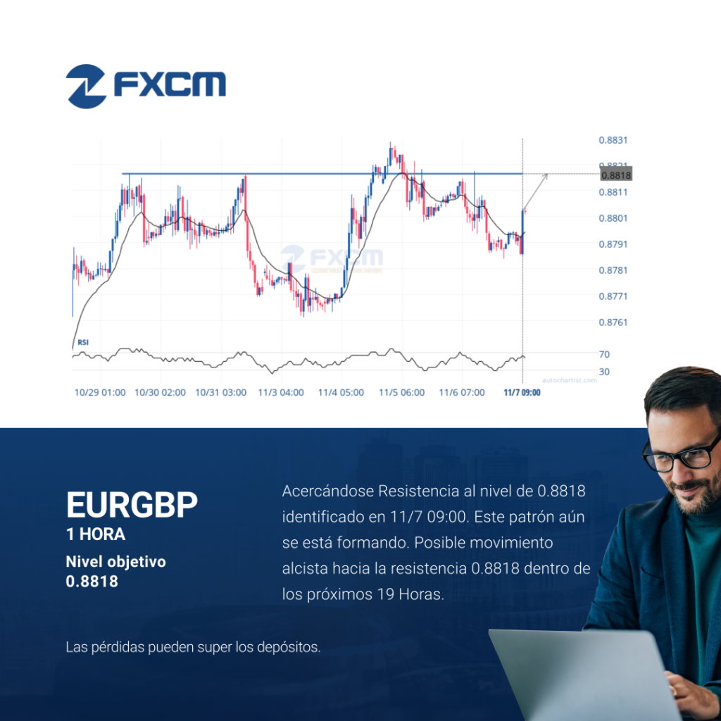 Acercándose Resistencia al nivel de 0.8818 identificado en 11/7 09:00. Este patrón aún se está formando. Posible movimiento alcista hacia la resistencia 0.8818 dentro de los próximos 19 Horas. El rendimiento pasado no es indicativo de resultados futuros. Las pérdidas pueden exceder los fondos depositados.