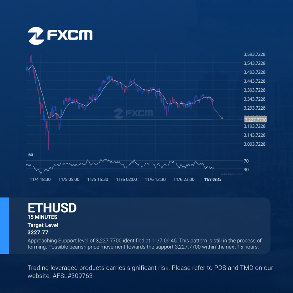 Approaching Support level of 3,227.7700 identified at 11/7 09:45. This pattern is still in the process of forming. Possible bearish price movement towards the support 3,227.7700 within the next 15 hours. Past performance is not an indicator of future results. Trading leveraged products carries significant risk. Please refer to PDS and TMD on our website. […]