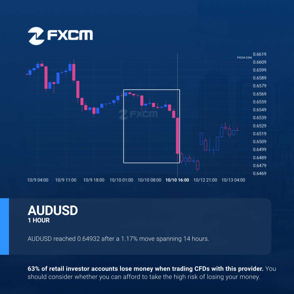 AUDUSD reached 0.64932 after a 1.17% move spanning 14 hours. Past performance is not an indicator of future results. Trading leveraged products carries significant risk. Please refer to PDS and TMD on our website. AFSL#309763
