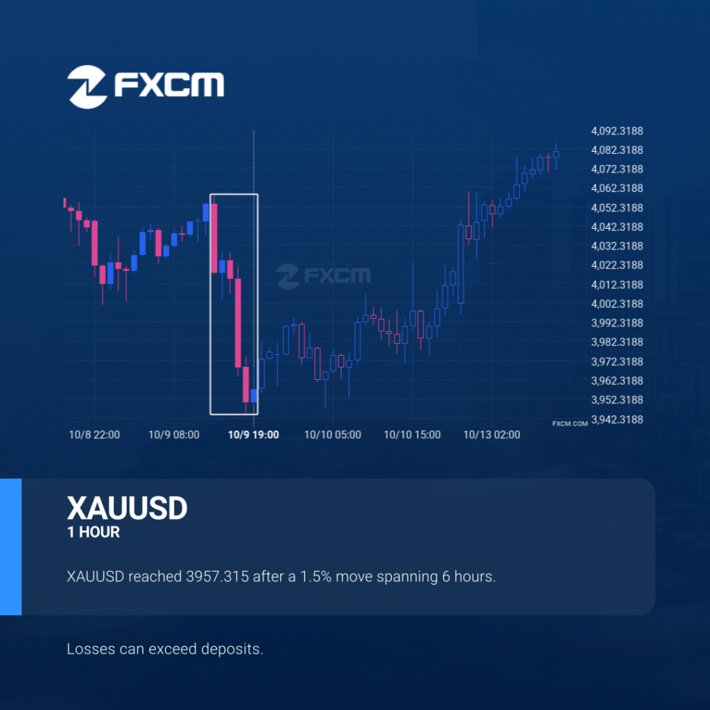 XAUUSD just posted a 1.5% move over the past 6 hours – a move that won’t go unnoticed by any trading style. Past performance is not an indicator of future results. Losses can exceed deposits.