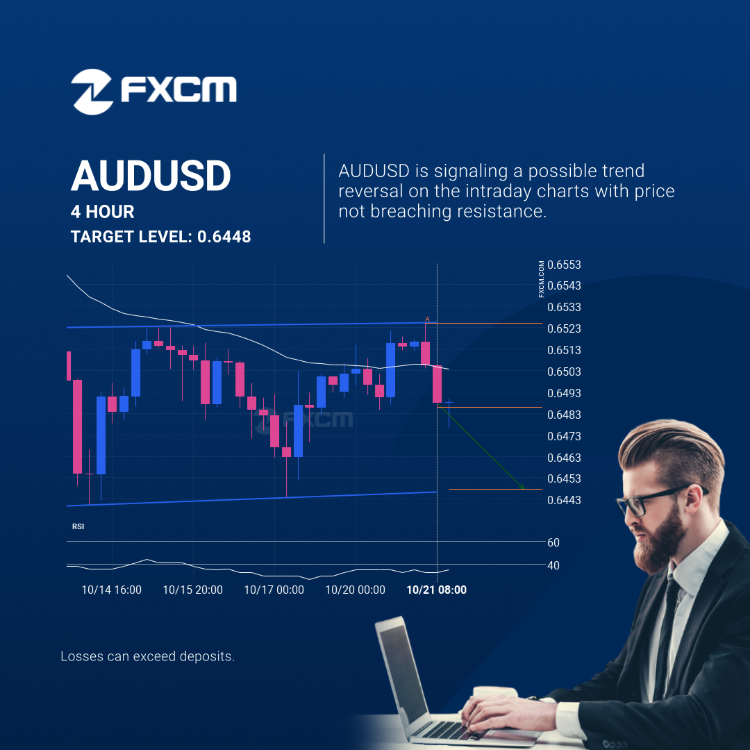 Emerging Flag pattern in its final wave was identified on the AUDUSD 4 hour chart. After a strong bearish run, we find AUDUSD heading towards the upper triangle line with a possible resistance at 0.6448. If the support shows to hold, the Flag pattern suggests a rebound back towards current levels.