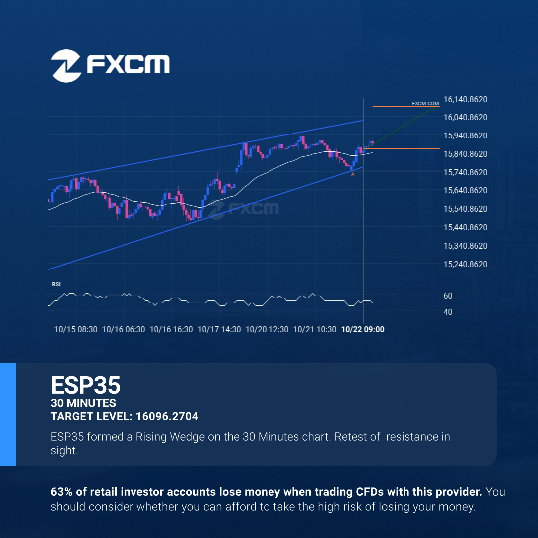 ESP35 is trapped in a Rising Wedge formation, implying that a breakout is Imminent. This is a great trade-setup for both trend and swing traders. It is now approaching a support line that has been tested in the past. Divergence opportunists may be very optimistic about a possible breakout and this may be the start of a new trend. It may also be that this convergence factor may result in the ideal setup for swing traders that are on the lookout for a possible bounce-back. Whatever happens, an initial move towards 16096.2704 is expected in the short term.