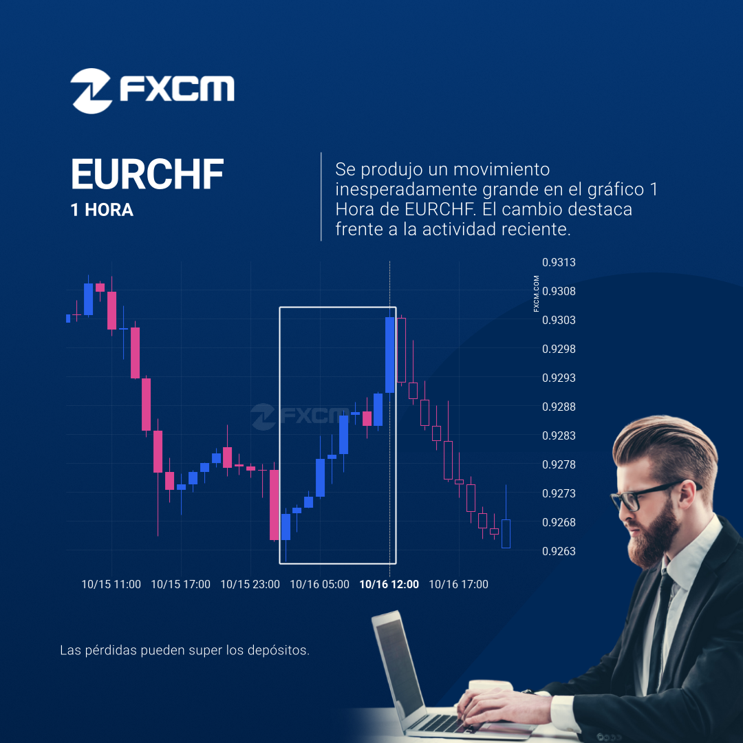 EURCHF subió bruscamente durante 10 Horas, marcando un movimiento inusualmente grande que supera el 98% de los cambios anteriores en este instrumento.