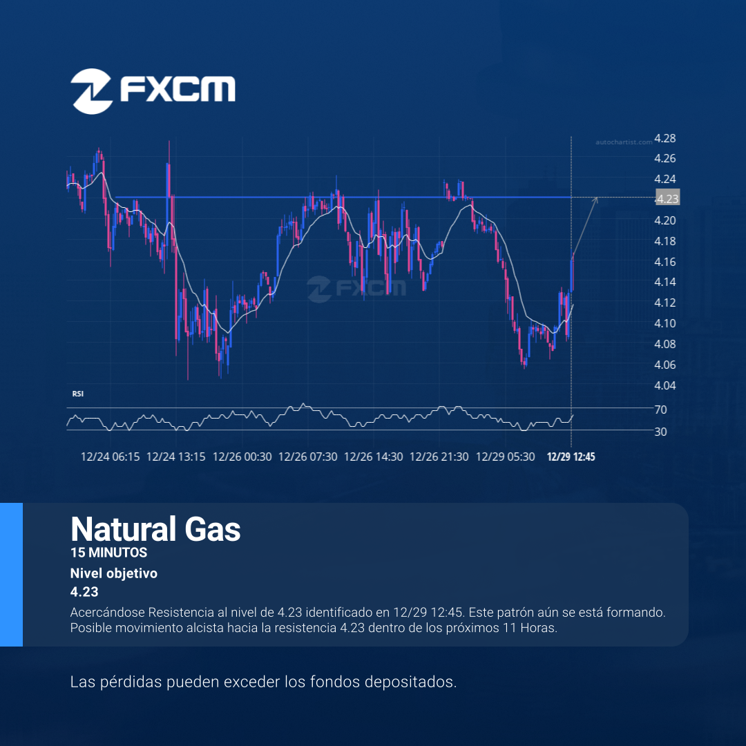 Acercándose Resistencia al nivel de 4.23 identificado en 12/29 12:45. Este patrón aún se está formando. Posible movimiento alcista hacia la resistencia 4.23 dentro de los próximos 11 Horas.