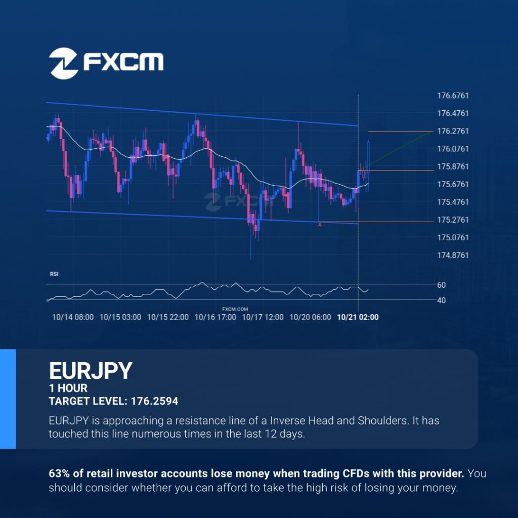 A Inverse Head and Shoulders pattern was identified on EURJPY at 175.821, creating an expectation that it may move to the resistance line at 176.2594. It may break through that line and continue the bullish trend or it may reverse from that line. Past performance is not an indicator of future results. Trading leveraged products […]