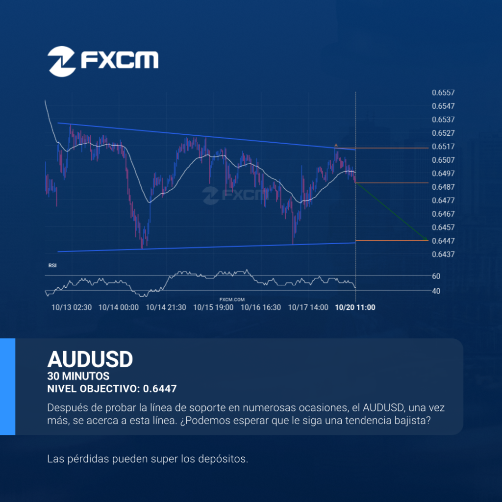 El AUDUSD se aproxima a el soporte de un Triángulo descendiente