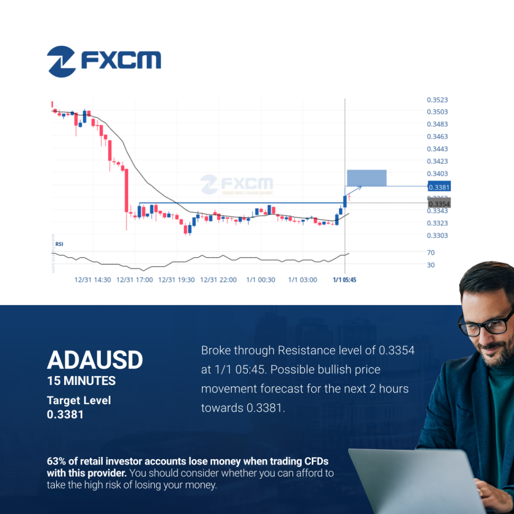 Broke through Resistance level of 0.3354 at 1/1 05:45. Possible bullish price movement forecast for the next 2 hours towards 0.3381. Past performance is not an indicator of future results. Losses can exceed deposits.
