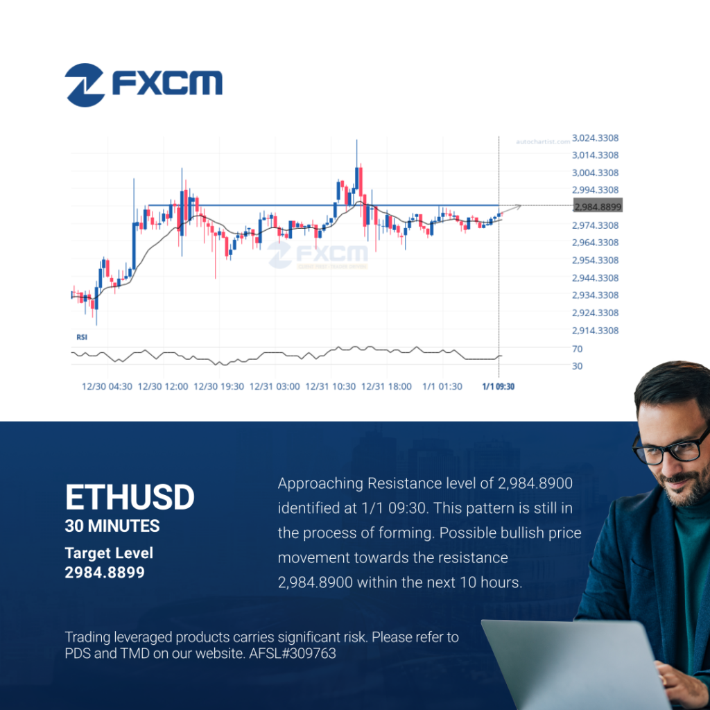 Approaching Resistance level of 2,984.8900 identified at 1/1 09:30. This pattern is still in the process of forming. Possible bullish price movement towards the resistance 2,984.8900 within the next 10 hours. Past performance is not an indicator of future results. Trading leveraged products carries significant risk. Please refer to PDS and TMD on our website. […]