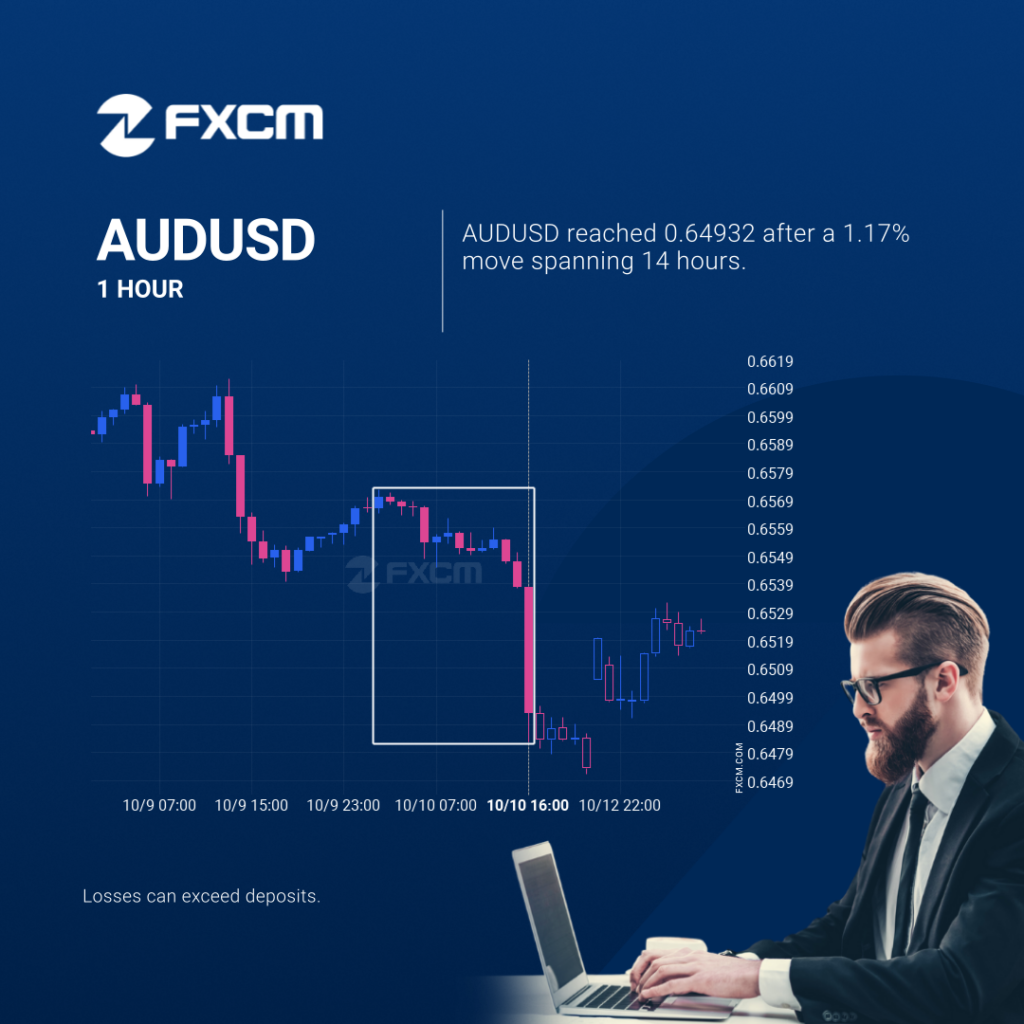 AUDUSD reached 0.64932 after a 1.17% move spanning 14 hours. Past performance is not an indicator of future results. Losses can exceed deposits.