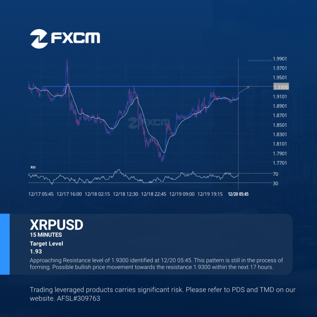 Approaching Resistance level of 1.9300 identified at 12/20 05:45. This pattern is still in the process of forming. Possible bullish price movement towards the resistance 1.9300 within the next 17 hours. Past performance is not an indicator of future results. Trading leveraged products carries significant risk. Please refer to PDS and TMD on our website. […]