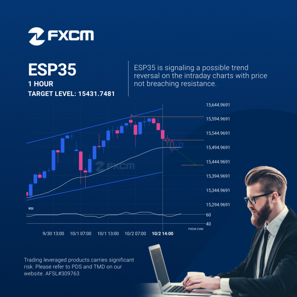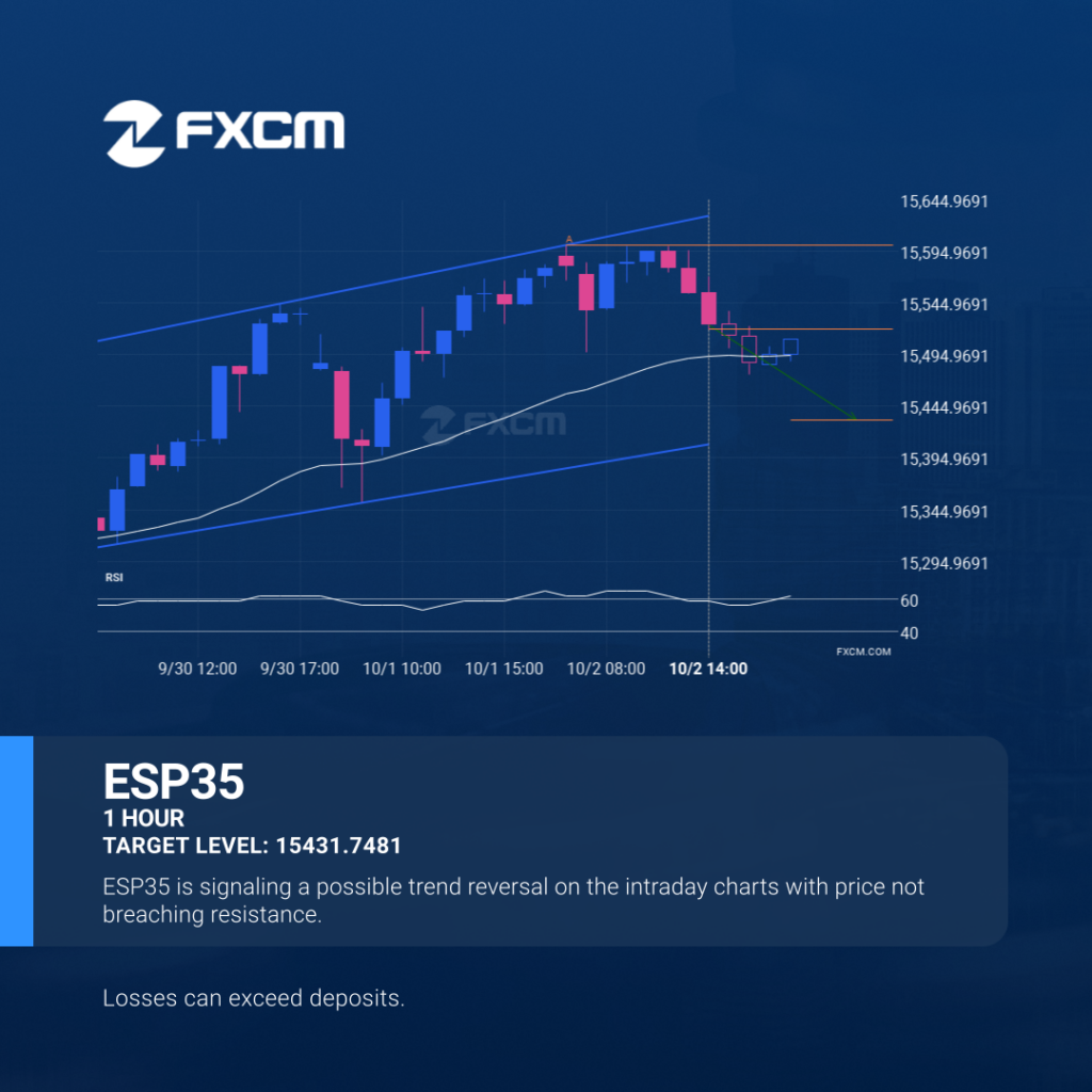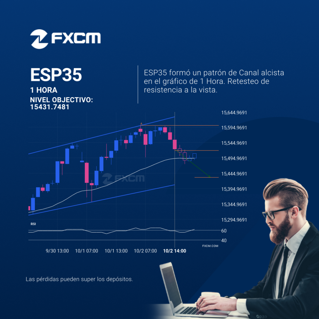 ESP35 is approaching the support line of a Channel Up. It has touched this line numerous times in the last 4 days. If it tests this line again, it should do so in the next 5 hours. Past performance is not an indicator of future results. Losses can exceed deposits.