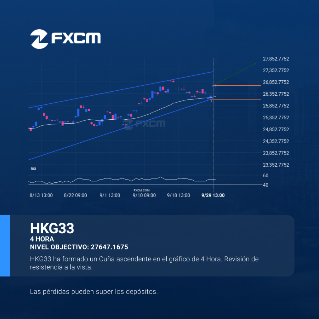 HKG33 – acercándose a la resistencia del Cuña ascendente