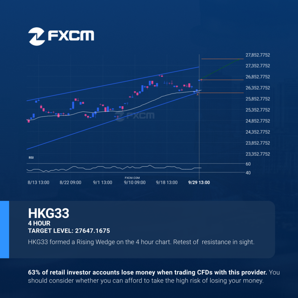HKG33 – acercándose a la resistencia del Cuña ascendente