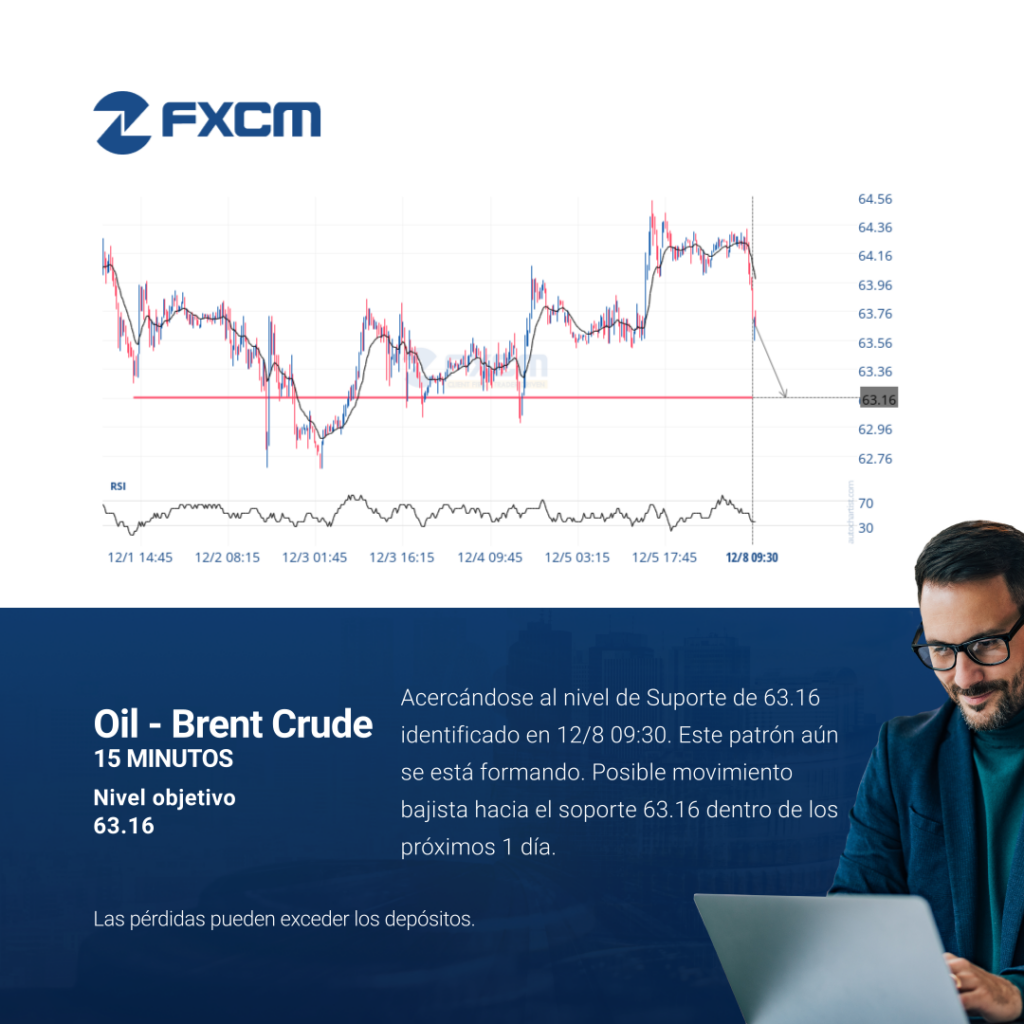 Acercándose al nivel de Suporte de 63.16 identificado en 12/8 09:30. Este patrón aún se está formando. Posible movimiento bajista hacia el soporte 63.16 dentro de los próximos 1 día. Las pérdidas pueden exceder los depósitos.