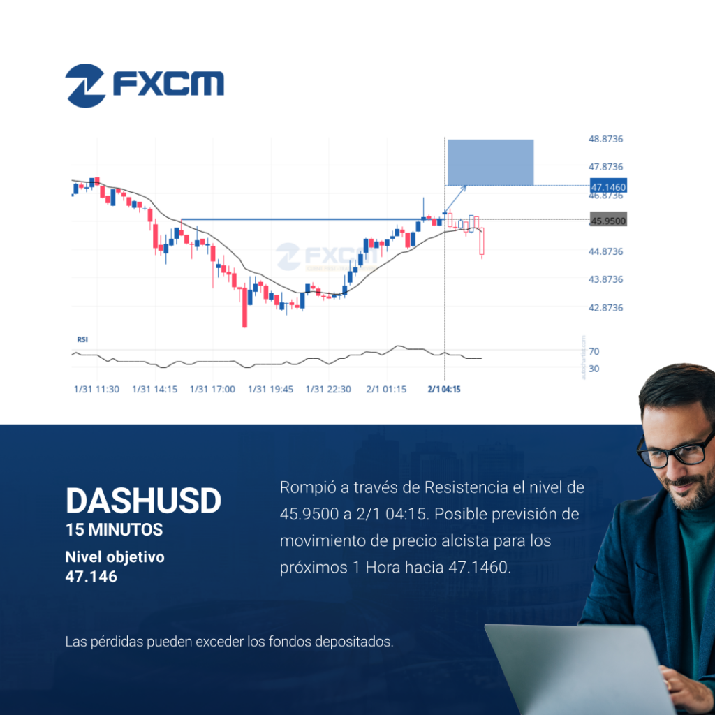 Rompió a través de Resistencia el nivel de 45.9500 a 2/1 04:15. Posible previsión de movimiento de precio alcista para los próximos 1 Hora hacia 47.1460. Las pérdidas pueden exceder los depósitos.