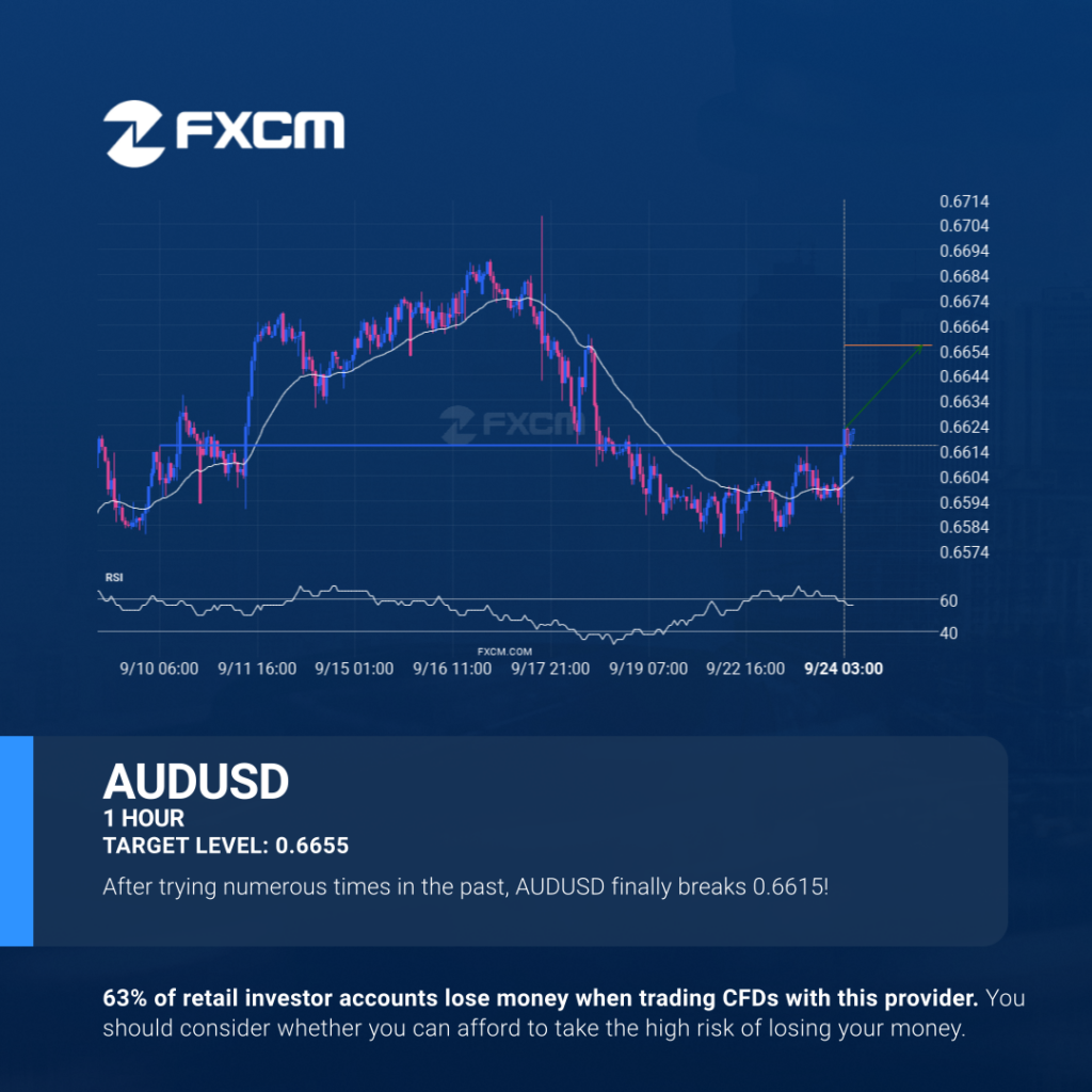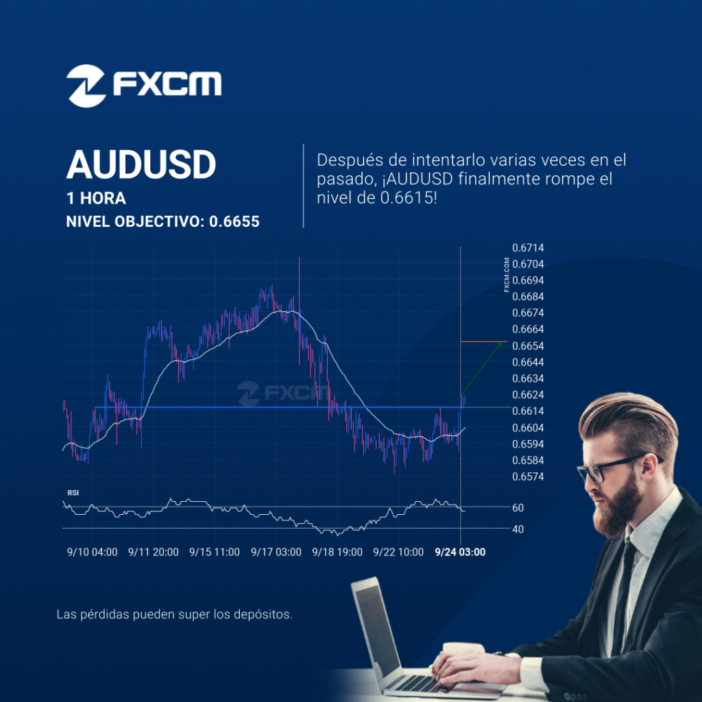 Rotura confirmada en el gráfico de 1 Hora de AUDUSD