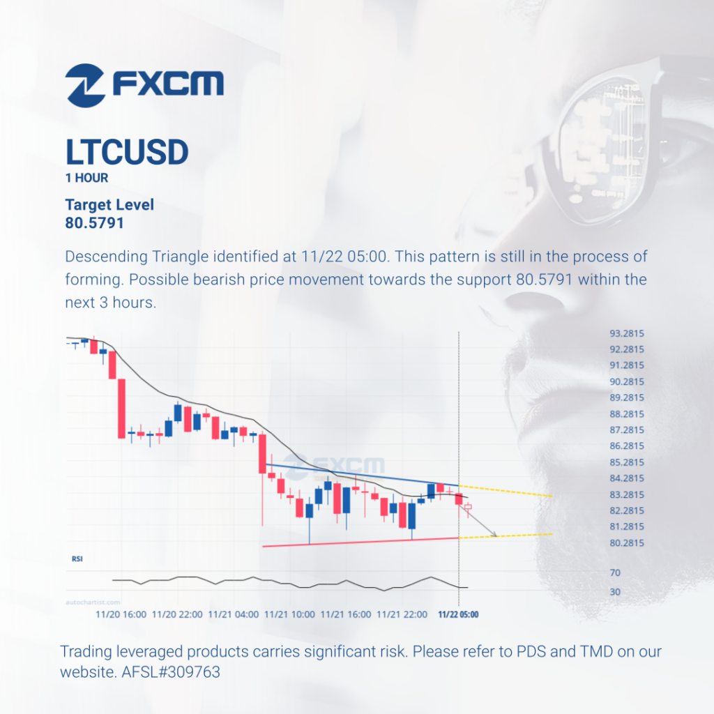 Descending Triangle identified at 11/22 05:00. This pattern is still in the process of forming. Possible bearish price movement towards the support 80.5791 within the next 3 hours. Past performance is not an indicator of future results. Trading leveraged products carries significant risk. Please refer to PDS and TMD on our website. AFSL#309763