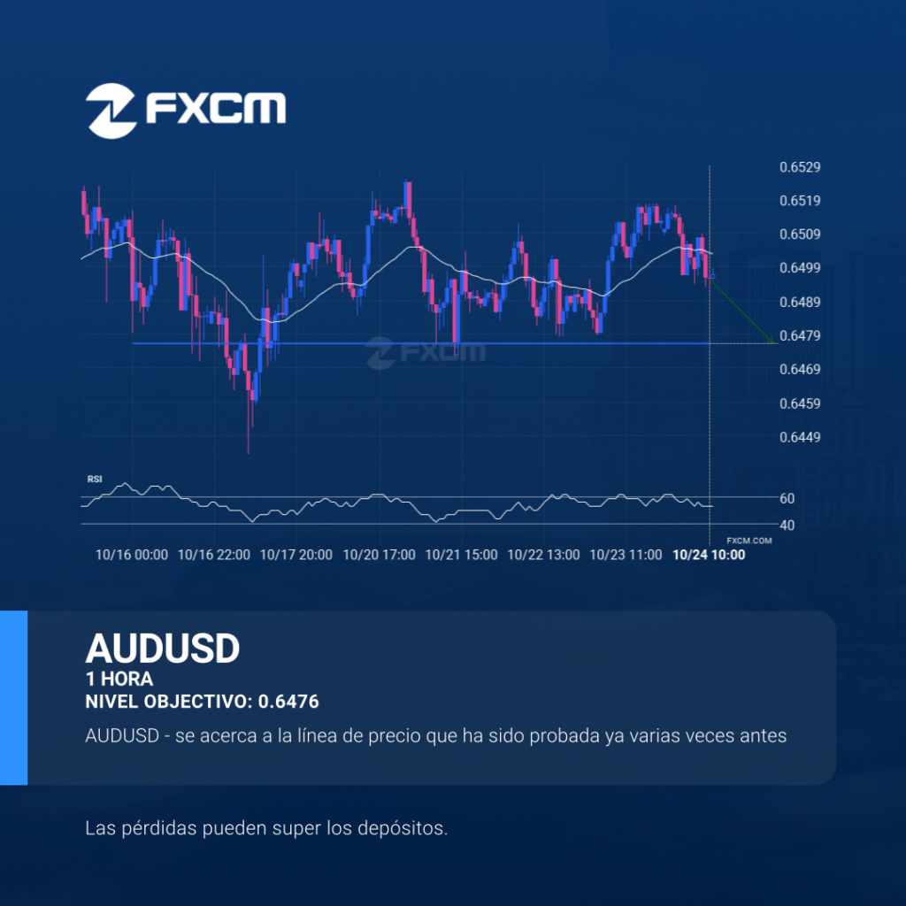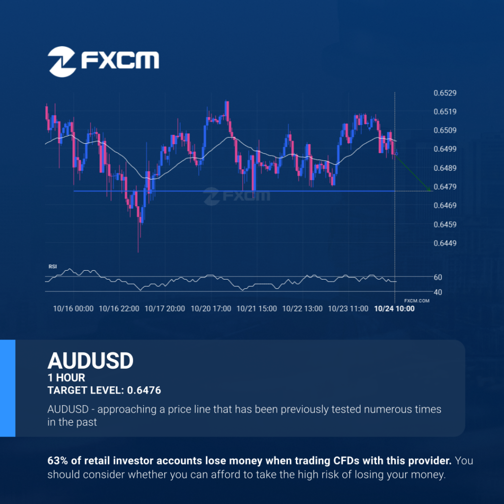 AUDUSD is approaching a support line at 0.6476. If it hits the support line, it may break through this level to continue the bearish trend, or it may turn around back to current levels. Past performance is not an indicator of future results. Losses can exceed deposits.