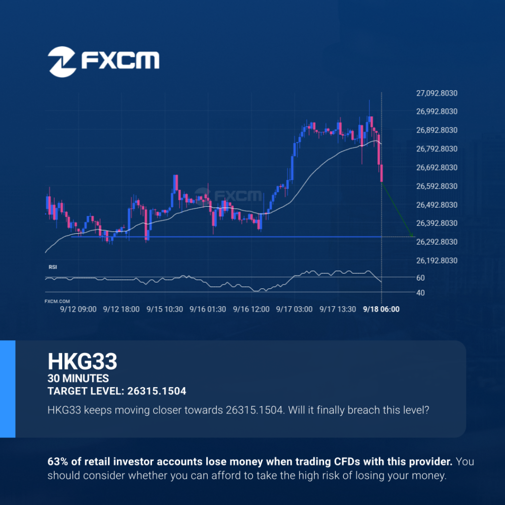 HKG33 is about to retest a key horizontal support level near 26315.1504. It has tested this level 3 times in the recent past and could simply bounce off like it did last time. However, after this many tries, maybe it’s ready to start a new trend. Past performance is not an indicator of future results. […]