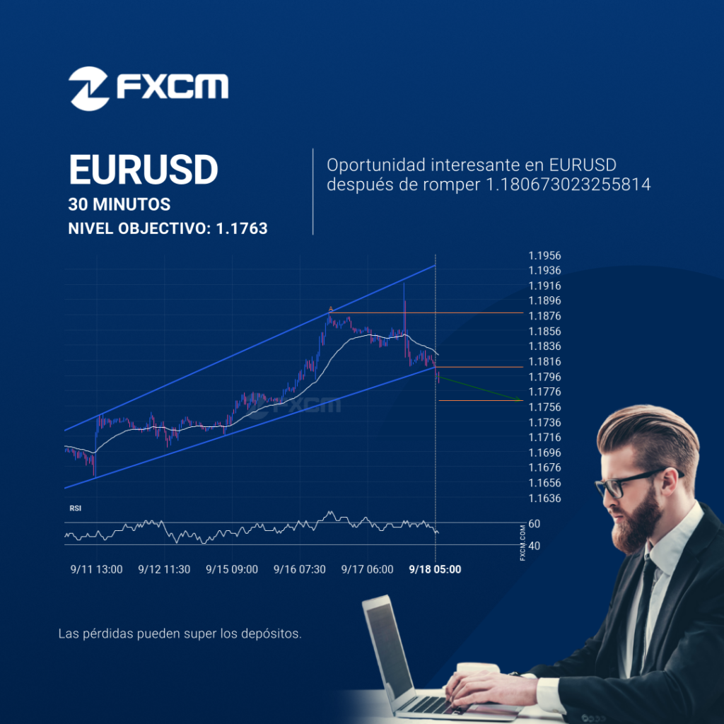 The last 8 30 Minutes candles on EURUSD formed a Channel Up pattern and broken out through the pattern lines, indicating a possible bearish movement towards the price level of 1.1763. Past performance is not an indicator of future results. Losses can exceed deposits.