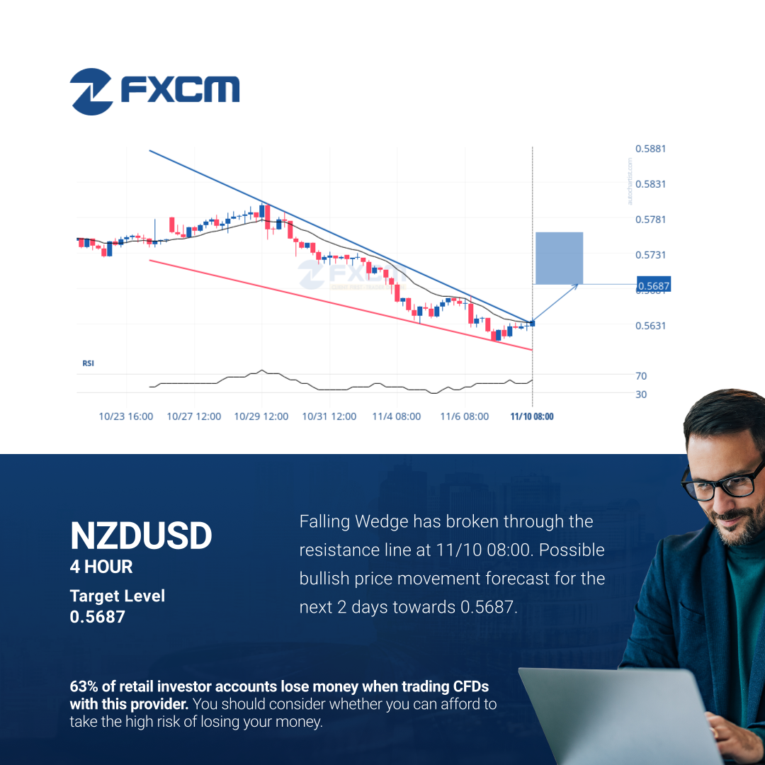 Falling Wedge has broken through the resistance line at 11/10 08:00. Possible bullish price movement forecast for the next 2 days towards 0.5687.
