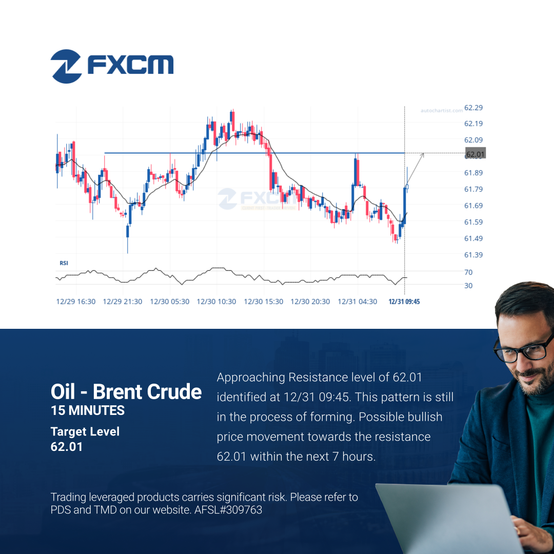 Approaching Resistance level of 62.01 identified at 12/31 09:45. This pattern is still in the process of forming. Possible bullish price movement towards the resistance 62.01 within the next 7 hours.