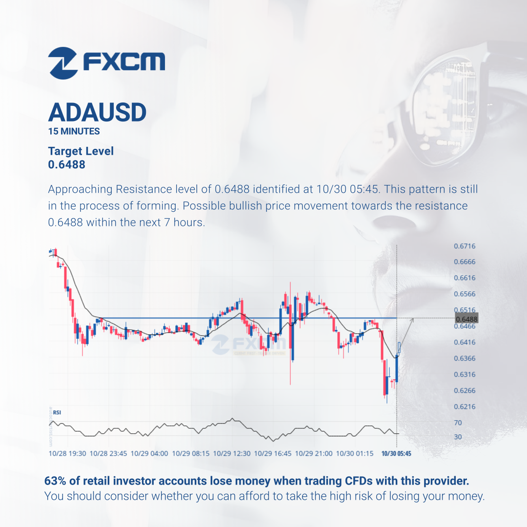 Approaching Resistance level of 0.6488 identified at 10/30 05:45. This pattern is still in the process of forming. Possible bullish price movement towards the resistance 0.6488 within the next 7 hours.
