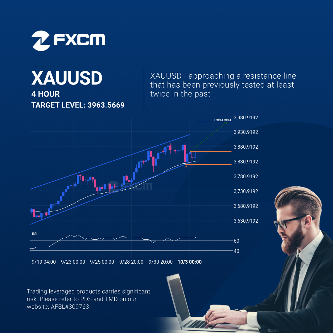 An emerging Channel Up has been detected on XAUUSD on the 4 hour chart. There is a possible move towards 3963.5669 next few candles. Once reaching support it may continue its bullish run or reverse back to current price levels.